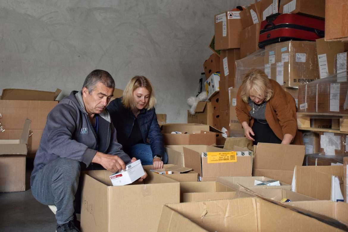– Мій фронт робіт тут – розпаковка і сортування. Перев’язки, антисептики, дитячі і дорослі ліки, засоби гігієни… Усе це приїздило великими вантажівками. І щоб інші члени моєї родини, фахові медики, могли предметно розсортувати ліки, треба розібрати всі ці палети і ящики.