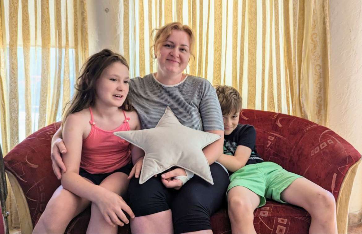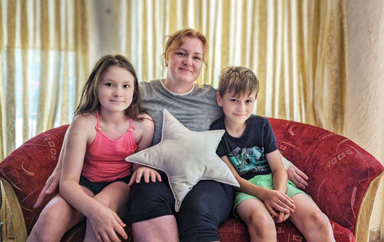 Знайомтеся, Надія Курочка, 35 років, з міста Балаклія Харківської області та двоє її дітей – Василіса (10 років) та Гліб (8 років). У закладі тимчасового проживання ВПО Комітету медичної допомоги в Закарпатті вона з початку липня 2023 року.
