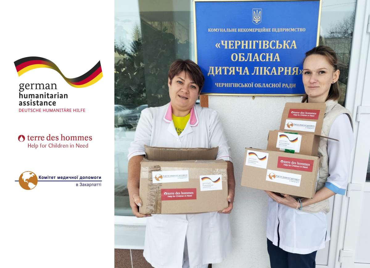 Це не перший гумвантаж для чернігівських лікарень у рамках реалізації проєкту, який підтримує «terre des hommes Deutschland e.V.» та фінансує Федеральне міністерство закордонних справ Німеччини. У жовтні минулого року необхідні медикаменти було доставлено до Чернігівської обласної психоневрологічної лікарні. Загалом же протягом шести місяців дії програми ми допомогли медзакладам Рахова, Ужгорода та Мукачева на Закарпатті, а ще Чернігівщини, Житомирщини, Івано-Франківщини, Херсонщини, Донеччини.