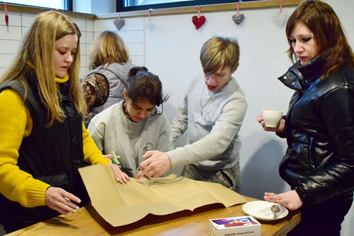 Відповідно до розкладу, молоді люди продовжують опановувати навички приготування кавових напоїв, взаємодії з відвідувачами, пакування подарунків тощо. За словами тренерів і учнів, серед відвідувачів особливою популярністю користуються свічки, керамічні вироби, картини, ткані і валяні аксесуари. Всі вони вироблені в інших майстернях будинку-інтернату.