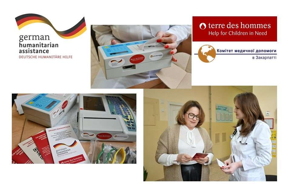 За підтримки «terre des hommes Deutschland e.V.» та фінансування Федерального міністерства закордонних справ Німеччини продовжуємо реалізацію проєкту «Покращення захисту дітей у надзвичайних ситуаціях в Україні шляхом надання безпечних притулків, забезпечення продуктами харчування та непродовольчими товарами, а також психосоціальної підтримки». У рамках складової проєкту щодо покращення матеріально-технічного стану українських закладів охорони здоров’я Комітет медичної допомоги в Закарпатті передав два сучасні електрокардіографа КНП «Ужгородська міська дитяча клінічна лікарня» Ужгородської міської ради.