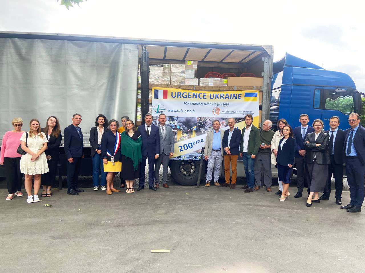 Те, що у лютому 2022 року почалося як одноразовий акт солідарності з боку мешканців 15-го округу Парижа, перетворилося на справжній довготривалий гуманітарний міст між Францією та Україною. У відправці 200-го гумвантажу взяли участь Надзвичайний і Повноважний Посол України у Франції Вадим Омельченко, директорка Асоціації SAFE Катрін Дюплессі, представники мерії 15-го району Парижу, організацій «Ambulanciers sans Frontières», «Ouest-France Solidarités», «Électriciens sans Frontières».