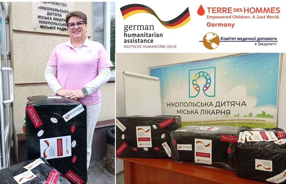 У рамках реалізації медичного напрямку проєкту «Покращення захисту дітей у надзвичайних ситуаціях в Україні шляхом надання безпечних притулків, забезпечення продуктами харчування та непродовольчими товарами, а також психосоціальної підтримки» Комітет медичної допомоги в Закарпатті передав медикаменти та витратні матеріали КП «Нікопольська дитяча міська лікарня» Нікопольської міської ради.