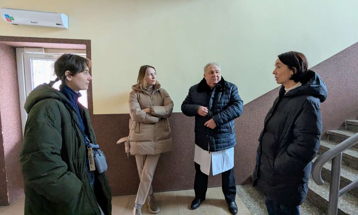 Дар’я Дмитренко разом із директоркою КМДЗ Наталією Кабацій та координаторкою проєктів Комітету Лесею Левко зустрілися з головним лікарем Тячівської районної лікарні Федором Яриничем. З ним обговорили поточні роботи на об’єкті, узгодили технічні аспекти, торкнулися питань доцільності енергетичної підтримки українських закладів охорони здоров’я та викликів, з якими вони стикаються в умовах війни.