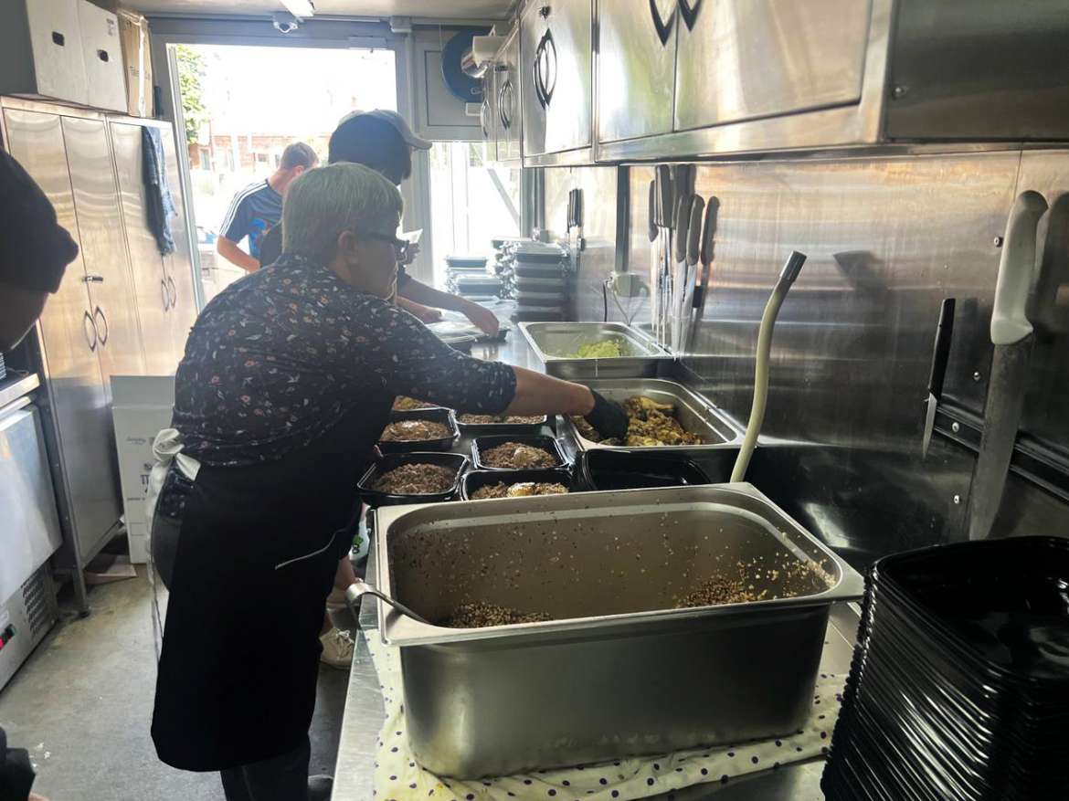 Черговий пункт призначення мобільної кухні у рамках проєкту «Їжа без кордонів» – Дергачі на Харківщині. Там команда ГО «Іскра Добра» разом із помічниками продовжують годувати людей, які постраждали внаслідок військових атак ворога.