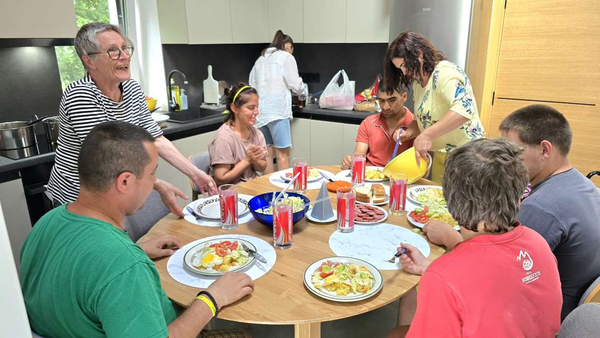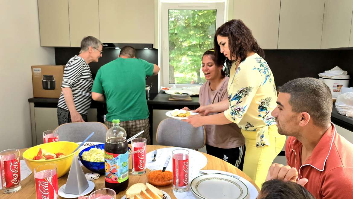 У додаткових будівлях інтернату надаються соціальні послуги вихованцям – з ними працюють як фахівці закладу, так і залучені спеціалісти. До прикладу, індивідуальні плани розвитку дітей підготували співробітниці Драгівського ІРЦ, який, у тому числі, обслуговує с. Вільшани. У своєму будинку старші підопічні вже наводять свої порядки – упорядковують по-своєму кімнати, налагоджують побут, опановують приготування нових страв. Усе це результат важкої, але такої необхідної роботи, і вона триває. У цьому зокрема нас підтримують партнери зі Швейцарії – Асоціація «Парасолька». Так, нещодавно у закладі працювали швейцарські фахівчині Клаудія Лой і Аннетте Шіс, які допомагали нам облаштовувати кімнати проживання, реабілітаційну залу, навчальний клас, їдальню та інші приміщення, налаштовували допоміжні засоби, займалися з маленькими підопічними, а разом зі старшими готували швейцарську страву рьошті (тепер цей рецепт можна сміливо просити у нашої Едіти).