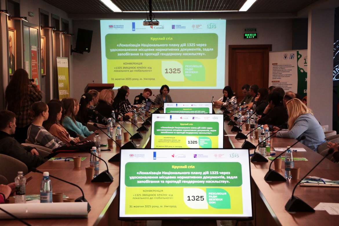 Важливі обговорення потім тривали у форматі конференції «1325 зміцнює країну: від локального до глобального», яка проходила в Ужгородському національному університеті. Серед іншого учасники торкнулися питань Національного плану дій 1325 та особливостей його локалізації у Закарпатській області, діяльності Рад з питань внутрішньо переміщених осіб на Закарпатті як складової Нацплану.