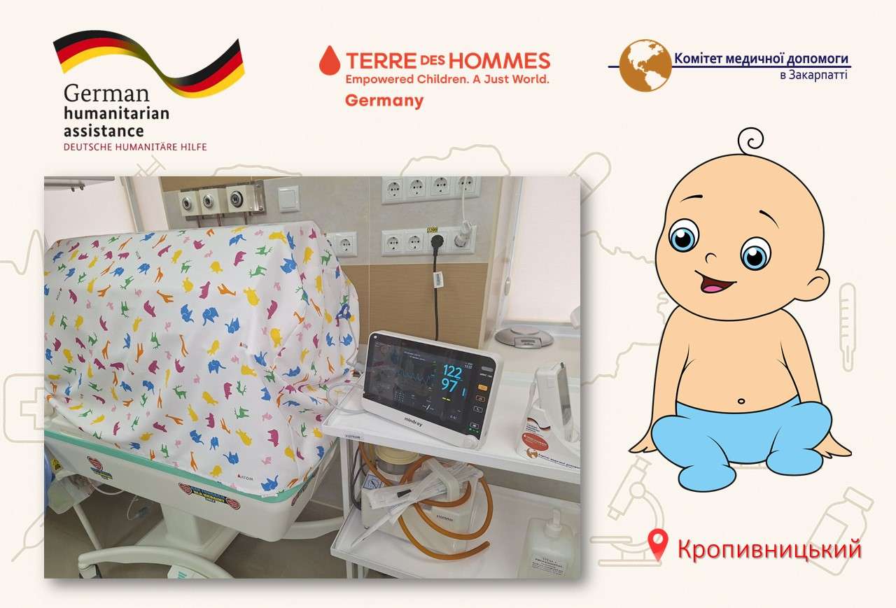 Йдеться про обладнання, призначене для надання медичної допомоги передчасно народженим дітям, які знаходяться на лікуванні у відділенні інтенсивної терапії новонароджених. Так, медзаклад отримав монітор пацієнта, судинні катетери, білірубінометр, одноразовий дихальний контур з підігрівом для немовлят, який використовується для підтримки функцій дихання у новонароджених.