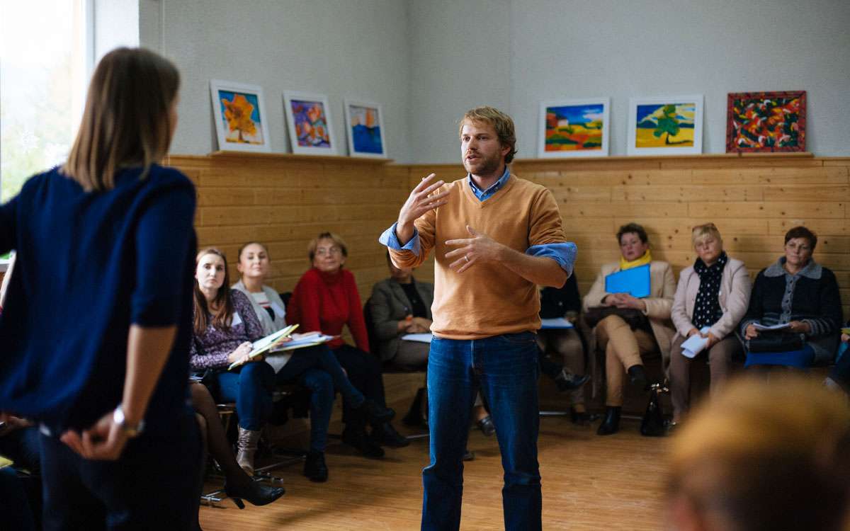 Тренером для понад двох десятків зацікавлених учасників став Лукас Вундерліх – медіатор, соціальний педагог, фахівець за спеціалізацією «Кризове втручання та конфлікти» (Швейцарія).